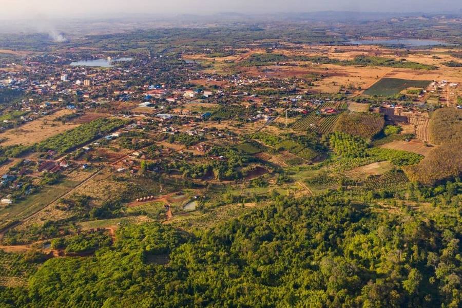 Banlung, the capital of Ratanakiri province, is situated in the far north of Cambodia, bordering Vietnam and Laos. The region is characterized by light-brown volcanic soil, ideal for cultivating rubber, cashews, and oil palms. The town is a bustling commercial center, with local ethnic minorities frequently visiting the market to sell their goods.