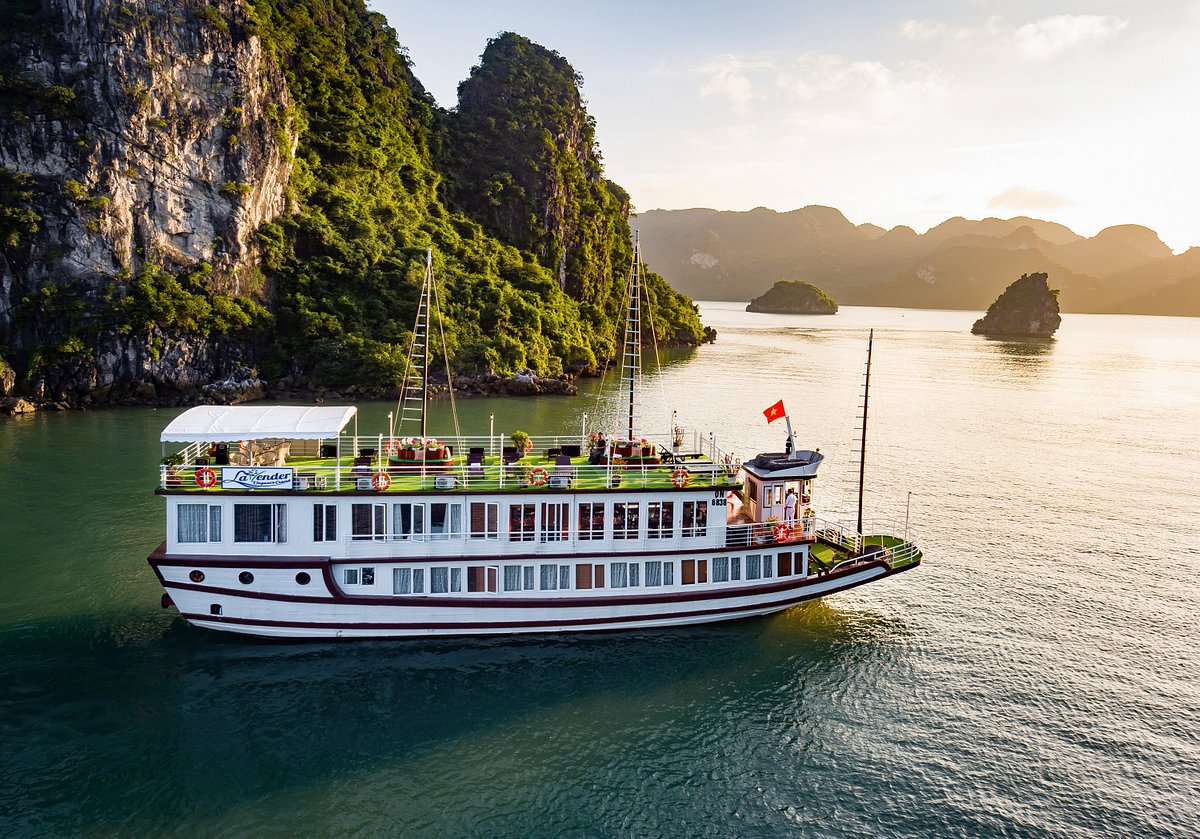 13:15: Relish a seafood lunch while cruising through Ha Long Bay, passing sights like Incense Burner Island, Fighting Cock Islet, and Stone Dog. Lavender Cruise offers a unique route through the bay.